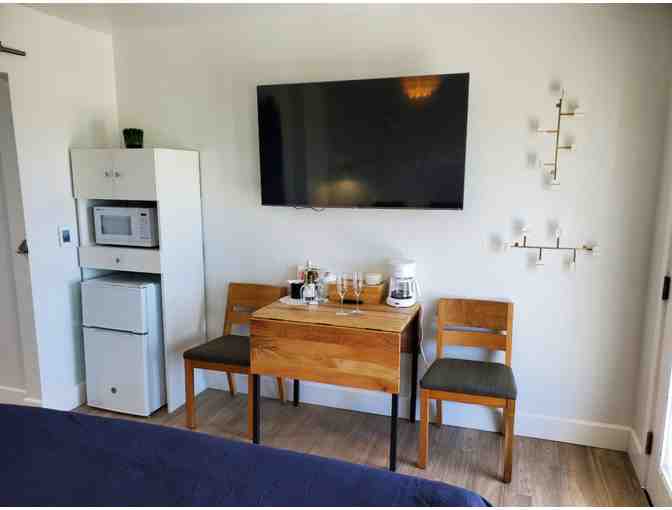 Located at the tip of a narrow peninsula on the spectacular Mendocino Coast in California, stands the majestic Point Arena Lighthouse! Within the shadow of this towering structure is the newest Point Arena Light Station vacation cottage, the Bookkeeper's Room. This charming and tastefully decorated studio features a king size bed, microwave and mini-fridge, DishTV, WiFi, radiant floor heat and a huge designer bathroom. It can also be configures as an Americans with Disabilities Act (ADA) compliant unit with two twin XL beds.