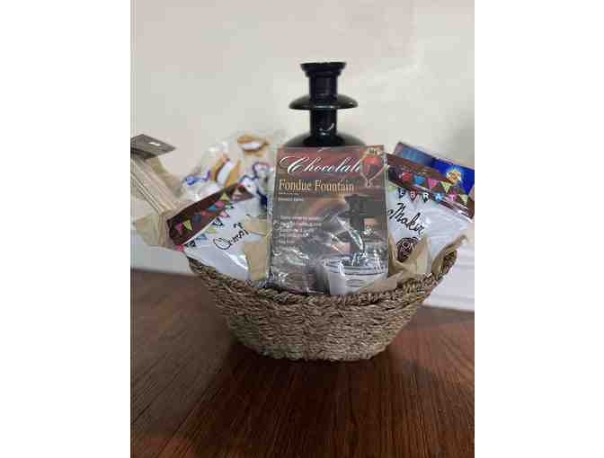 Basket includes everything you need to have fun with a chocolate fountain; including graham crackers, marshmellows and wooden sticks.