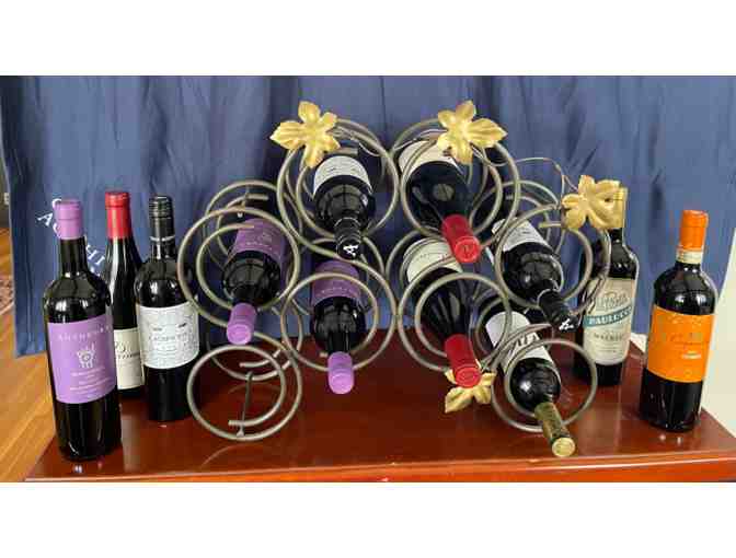 Beautiful hand-crafted wine rack stocked with an eclectic array of wonderful wines from all over the world.
