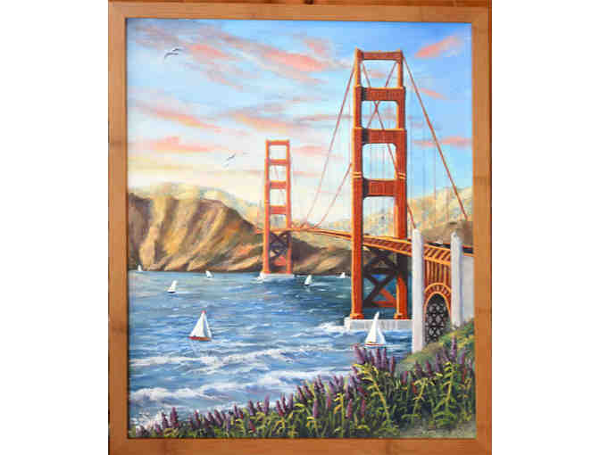 Original 16x20 oil painting, "Nana's Bridge" on canvas with a bamboo studio frame by artist Judy Boles.