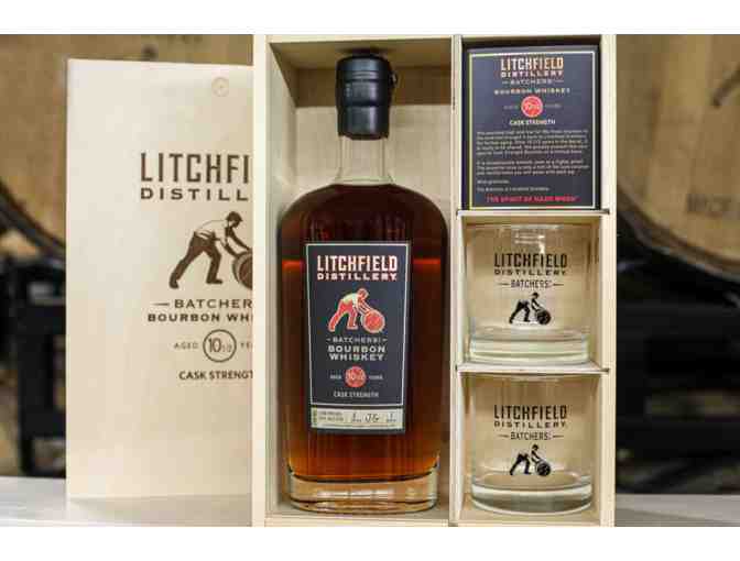 Litchfield Distillery Batchers Bourbon Whiskey and Rocks Glasses