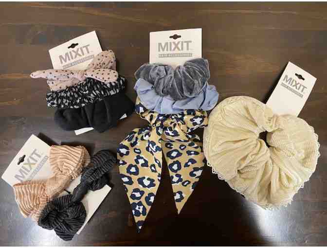 Eight (8) Scrunchies and One (1) hair tie to keep those locks in line.
