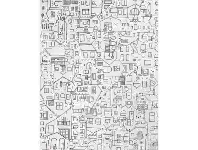 This unframed original piece, LA Homies, was created in mid 2020 at the start of the pandemic. Mostly confined to her LA home, Lizi took inspiration from the walks she was permitted to take around her neighborhood. Each house in this drawing was inspired by a real house that Lizi grew familiar with on these walks.
