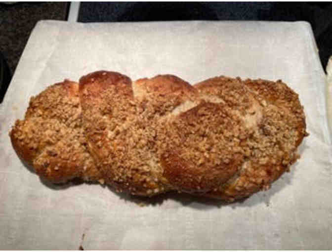 This is a large braid of yummy, cardamom-rich, Swedish coffee bread, covered with walnut pieces. It is Karen's favorite breakfast food!