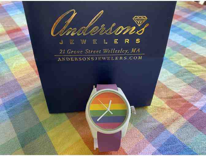 Pride Watch with 43MM Rainbow Dial and Purple Strap from Anderson's Fine Jewelers.
