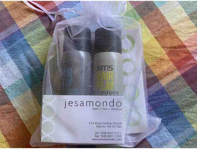This gift set includes a gift card for a gel manicure and a classic pedicure with Donna at Jesamondo Salon & Spa and a travel-sized KMS "Hair Stay" and KMS "Hair Play" set.