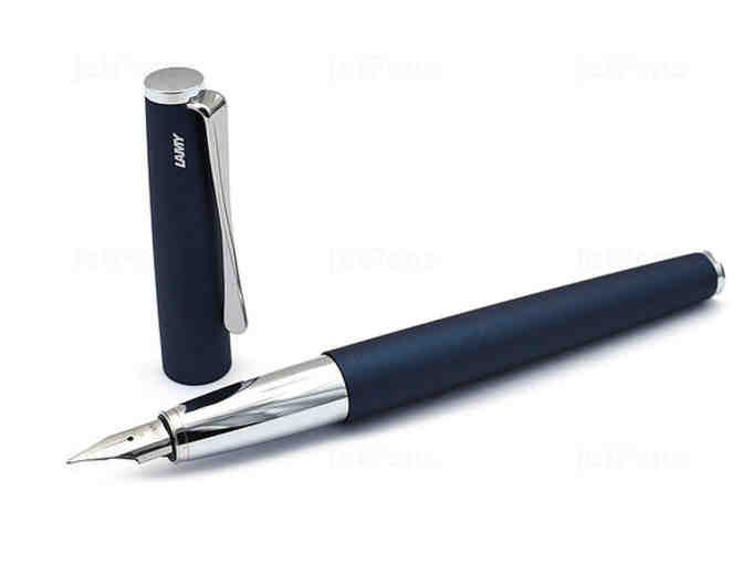 LAMY Studio Fountain Pen - Imperial Blue / Extra Fine, includes a converter to allow the use of any bottled fountain pen ink, and two Lamy ink cartridges.