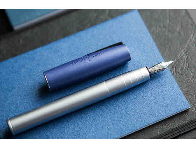 Faber-Castell Loom Fountain Pen in Metallic Blue - Fine Point, with 10 ink cartridges and a converter to allow the use of any bottled fountain pen ink.