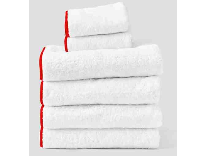 Add a touch of luxery to your bathroom with their signature starter pack of towels, in piped red - the perfect set for a new style!