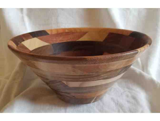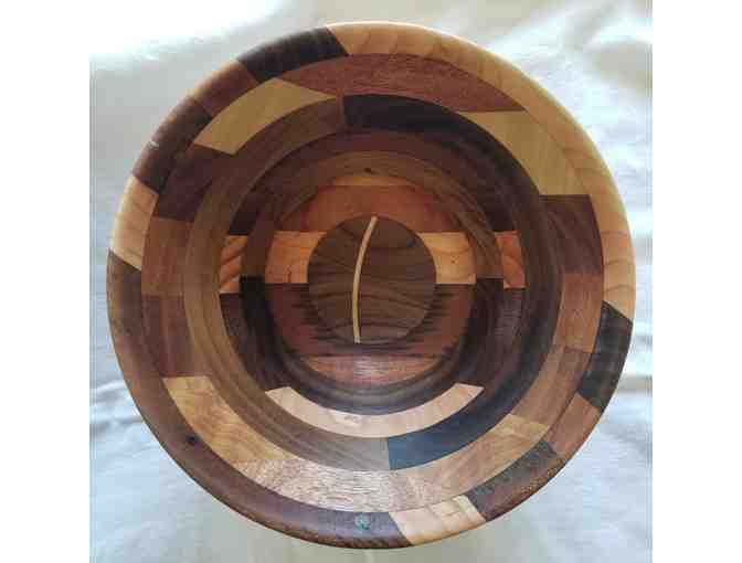 Beautiful handmade wooden bowl. Created by Venice High School's retired Woodshop/Stage Crew teacher Grant Francis. One of a kind usable piece of art. Approximately 9 1/2 inches wide at the top.