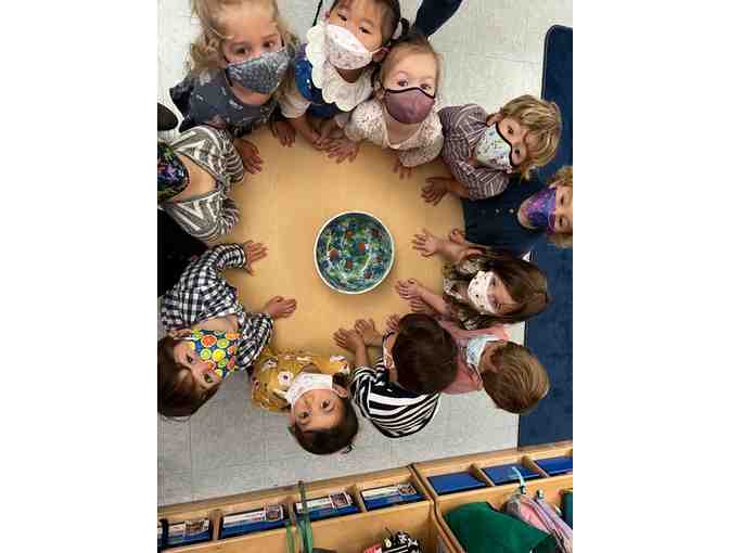The measurements are approximately 4¾ inches tall with a 10 inch diameter. The students chose the colors and helped apply the paint to the dish. Each of their names are engraved on the bottom of the bowl. Please consider bidding on this “soon to be” family heirloom.