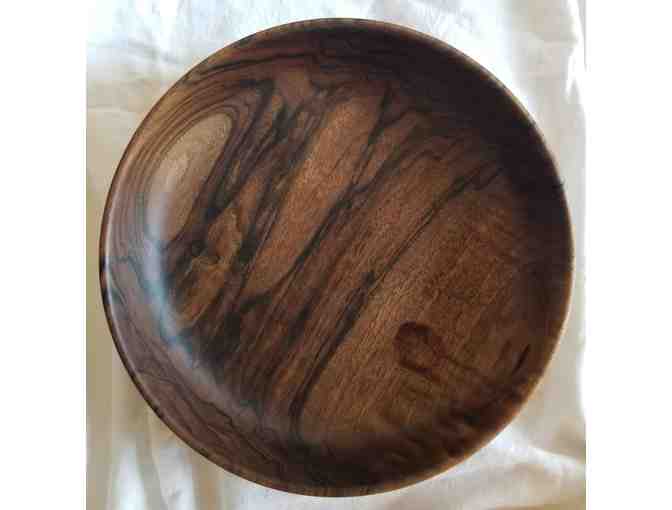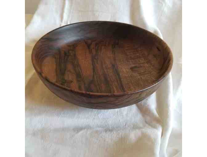 Handsome shallow wooden bowl (approximately 11inches wide.) This one of a kind piece was lovingly hand-made by Grant Francis the former VHS Woodshop/Stage Crew teacher.
