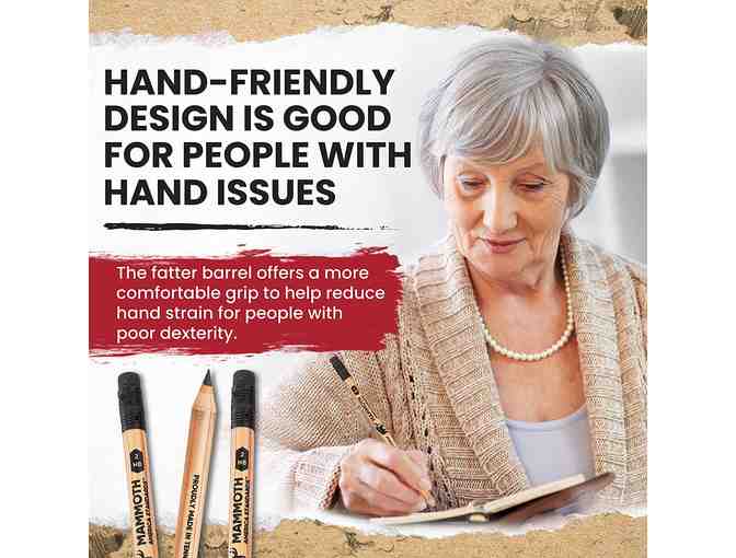 Mammoth pencils are also useful for older adults with hand dexterity issues because the fatter barrel lessens hand strain when writing.