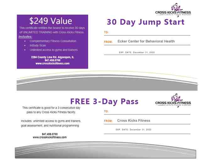 Also includes a FREE 3-Day Pass certificate, which is good for a 3 consecutive day pass to any Cross Kicks Fitness facility.