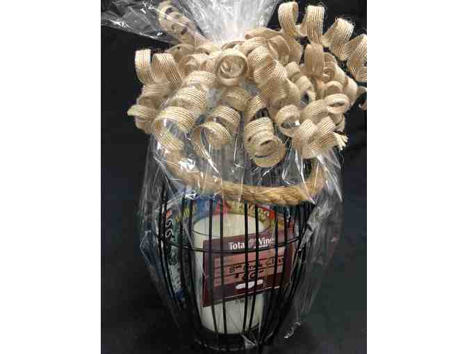 This beautiful iron lantern with candle is the perfect decorative addition to any room in your home. Light the candle and relax with your favorite "spirits" you picked up on the ride home. This Basket includes: