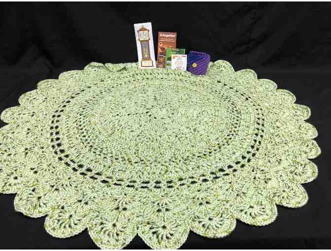 This beautiful hand-crocheted lap blanket is the perfect accompaniment to keep you warm on a cool summer evening as you sit on the porch reading! Don't forget to mark the page with your handstitched bookmark and you brew your cup of tea. Sip, relax, read and enjoy!