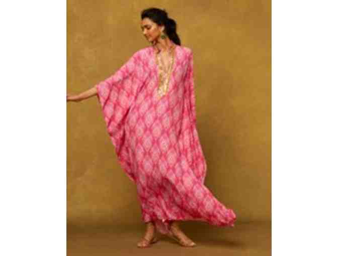 Zaria Long Kaftan in Fuchsia Ikat and Gold Embellishment