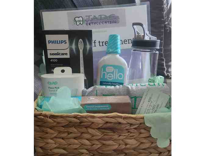 Enjoy this dental themed gift basket and $1,000 off a treatment at Jade Orthodontics!