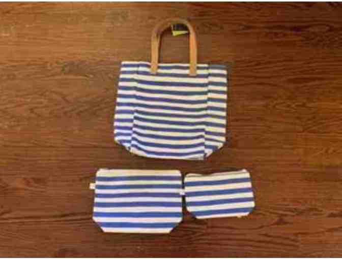 Tote Bag with Matching Travel Pouches - Bloom Stripe Blue