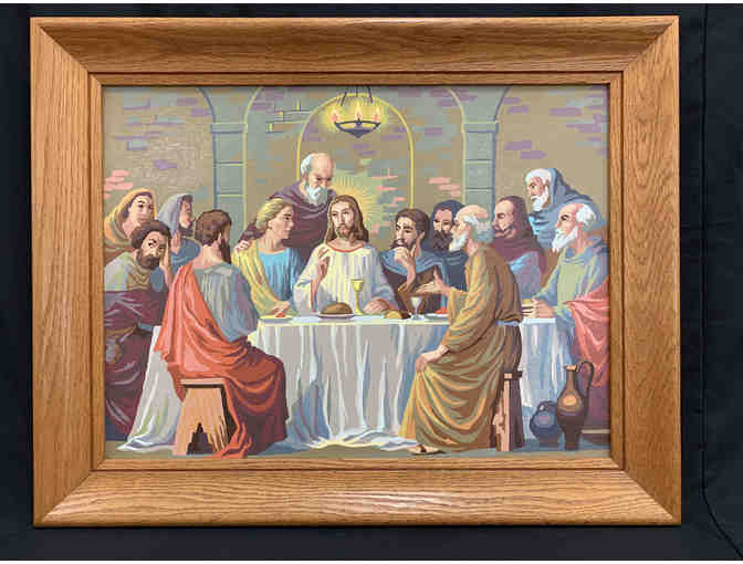 Painted by local artist, Lucille Tondreau, this original oil portrayal of "The Last Supper" measures 28.5" wide x 22" high. Framed in an solid wood oak frame, this original piece is a cherished family heirloom, which the donor wished to share with our bidding audience!