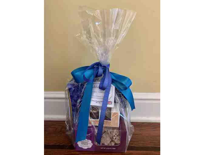 Enjoy a selection of imported UK favorites, including chocolate flavored meringue, orange truffle walnut swirls, McVitie’s Victoria Biscuits, olive-colored kitchen towel, and $20 gift certificate to Goldenberry Gourmet Gift, located in the heart of downtown New Canaan.