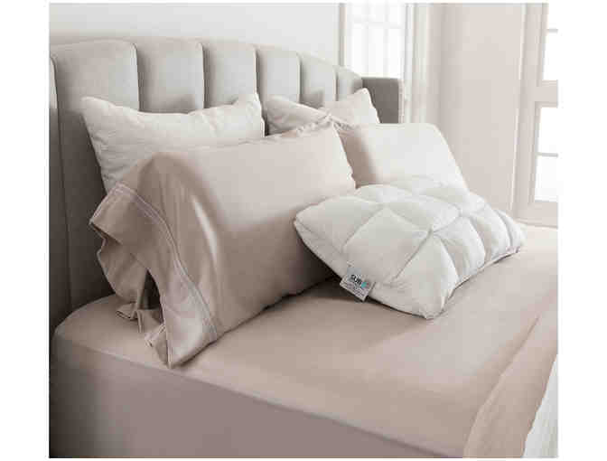 The winner will enjoy two dual-sided pillows featuring a hybrid of technical textiles and premium fills, fusing wellness with cooling comfort. The pocketed construction on the top of the pillow prevents the designer alternative fill from bunching, ensuring a consistently cushioned sleep surface. You can adjust the height of this pillow by simply removing the insert for a lower loft. Flip the pillow over to experience cooling support and pressure relief from our cool gel and premium temperature neutral memory foam. Cool to the touch, the pillow cover provides a physical barrier that resists dust mites, bed bugs and allergens. It features a blend of cooling fibers and ultra-plush TencelĀ® threads, creating a luxury responsive textile that is more absorbent than cotton, softer than silk and cools five times faster than traditional polyester. These fibers help tunnel heat away from the body, providing a refreshingly cooler sleep surface. The Antimicrobial Silver and silver chloride inhibit bacteria, deterioration, stains and odors, protecting the hybrid of technical textiles and premium fills. Hypoallergenic.