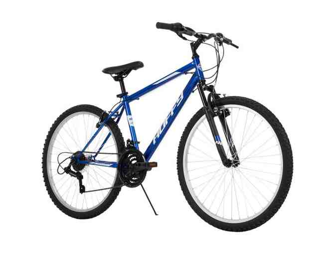 The winner will enjoy this 26” Mountain Bike from Huffy in blue, popular for trails and casual riding. This bike combines great style and the right specs to have a blast over bumps on paved trails or rides around the neighborhood. Smooth 18-speed index shifting system. Lightweight aluminum rims and 3-piece steel crank improve performance for a solid ride. Rider Height: 5’2” – 5’10”.