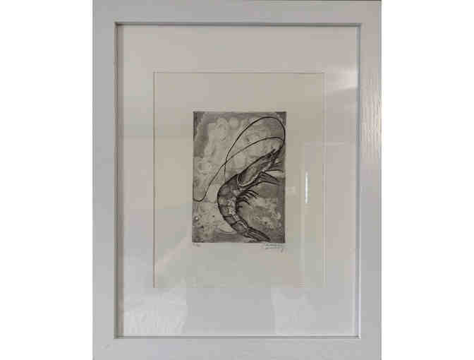 This beautiful, one-of-a-kind, shrimp etching was hand crafted by our very own art teacher, Camryn Connolly! Matted and framed, it measures 13" x 16".