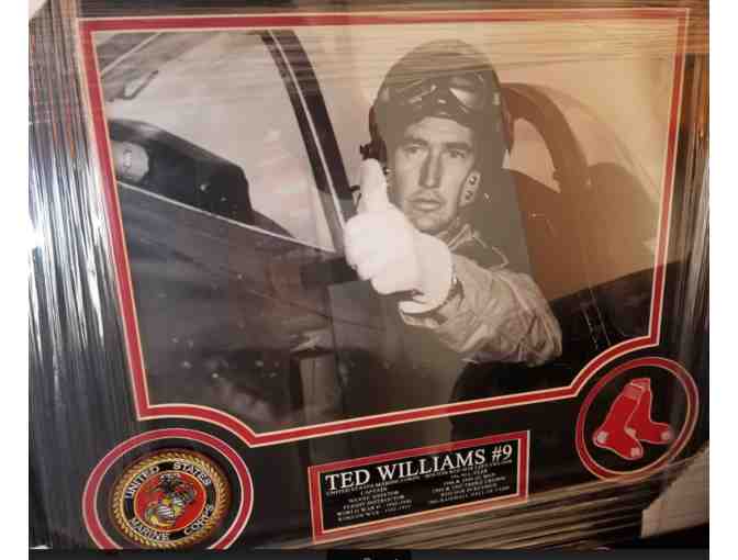 Commemorative picture of Ted Williams, the greatest hitter of all time. The Boston Red Sox left-fielder belted 521 home runs, batted .344, and had 1,839 RBI. He won two Triple Crowns. His .406 average in 1941 is one of sport's magic numbers. No player has topped .400 since.