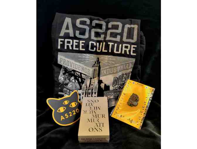 Package includes t-shirt (adult size L), tarot card deck, and AS220 pin and sticker.