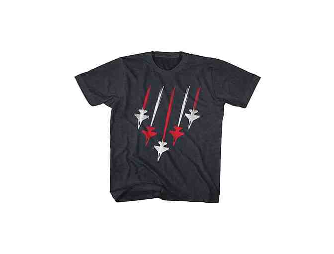 vintage look navy heather jet fighter screened printed in the USA tee (both size 4T),