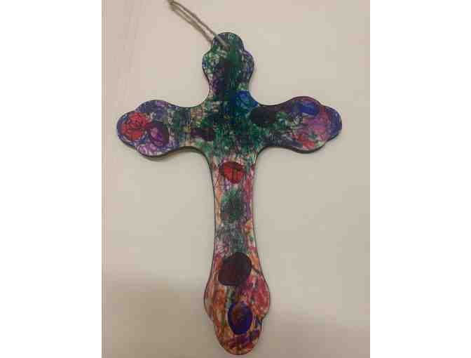 Attention 3 year old parents! This wooden cross was handmade by Ms. Regan and Mrs. Julie-Beth's class. Each child put their finger print on it and colored it. It would be a special keepsake to remember this special year for your little one!