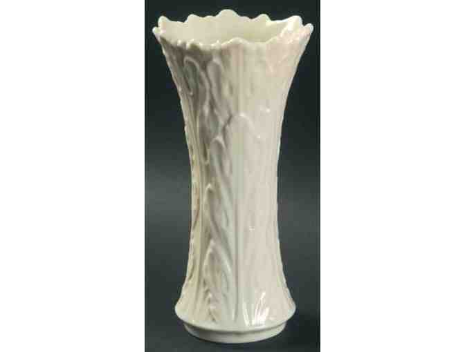 This discontinued vase from Lenox, The Woodland Collection, measures 6.25 inches in height. Now a collectible, circa 1983-1999, this vase is cream in color with a sculptured leaf pattern. Fill it with beautiful cut flowers or display as a stand alone piece, it's beauty will certainly add to any decor!