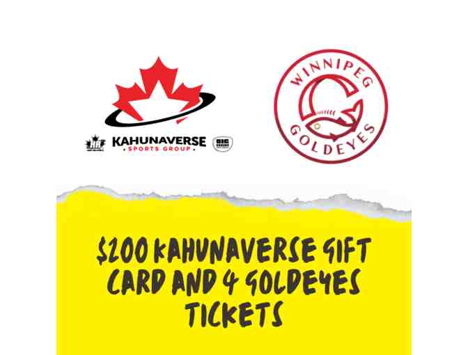 Package includes: $200 gift card to Kahunaverse and 4 tickets to a Goldeyes Game of your choosing.
