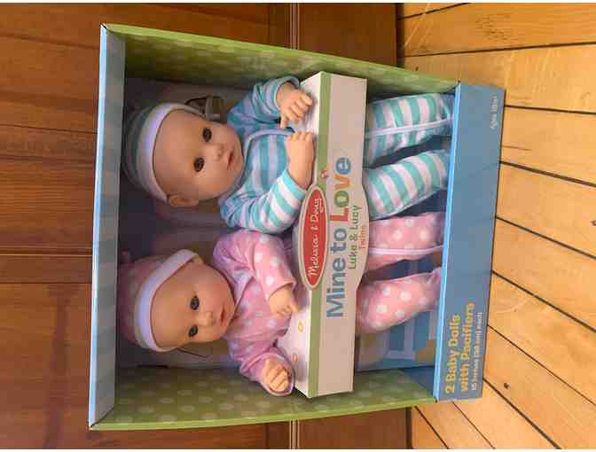 Your child will love these twin Melissa and Doug Baby Doll Twins! Their names are Luke and Lucy and they are ready for a home!