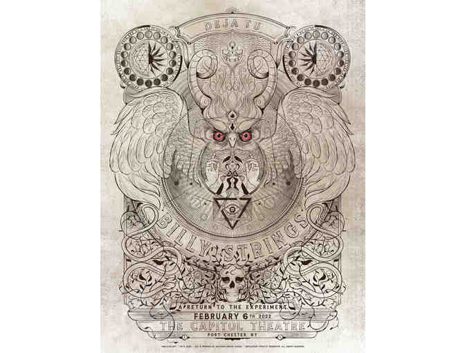 Occult-inspired poster for Billy Strings, illustrated by Billy Baumann. Screen printed in 4 colors on 110lb. Cougar white paper, 18x24"
