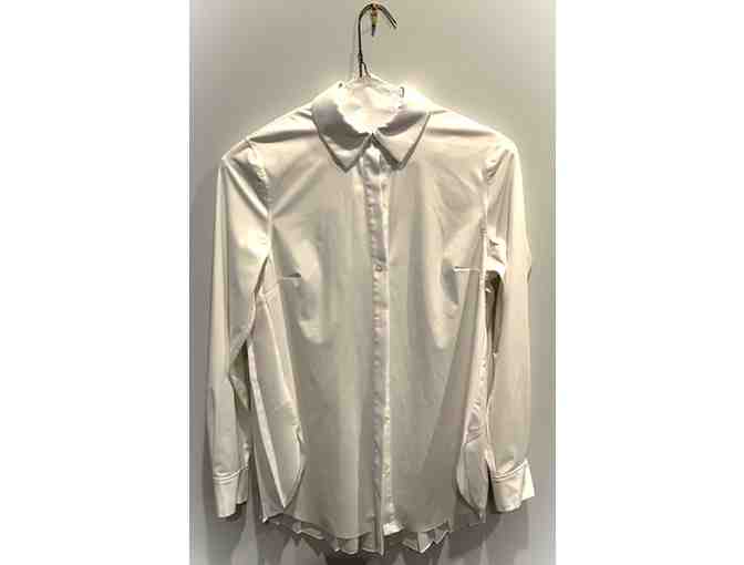 up for bid is a Lysse', off white, long sleeved button cuff blouson,