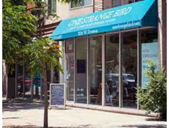 COne Strange Bird is an event space/art studio that markets a carefully curated selection of apparel, accessories, and gifts from local and national designers. The art studio offers a welcoming environment. It's the perfect place to express your creative side and unwind after a long work week. A wide variety of classes from terrarium building, painting, print making, collage are offered.