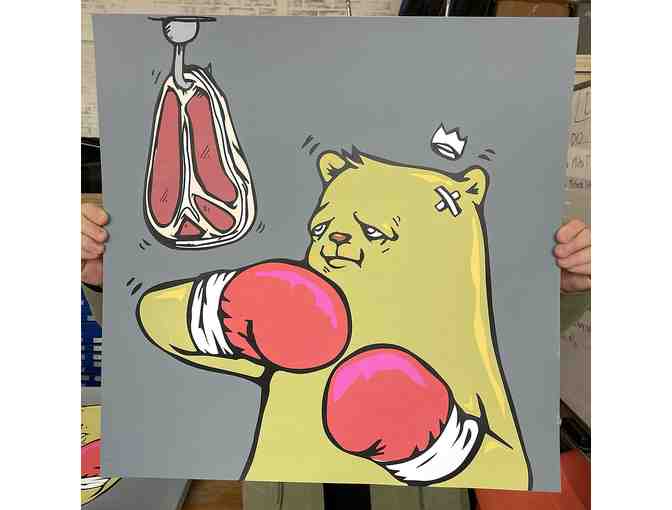 The latest and greatest from Chicago street artist and Burr's own JC Rivera, featuring his iconic bear. 7 colors printed on Mohawk Ultra White 100C, size 24x24", edition of 50, printed by Delicious Design League.