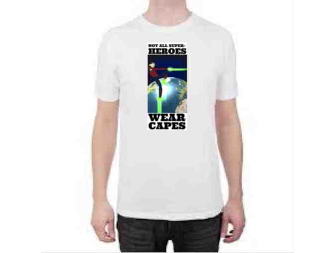 One of the collectible shirts from "The Academic Avengers," depicting and signed by Globetrotter (aka Mr. Lester) himself. Available in any size, this shirt is a perfect gift for all ages.