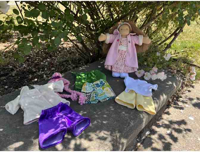 Handmade Waldorf doll by Jodi Rae Pure and Simple. The doll measures at 10.5 inches long and is made of 100% organic cotton and natural wool fill. This doll comes with 3 beautiful, organic cotton outfits. A dream set for any child!