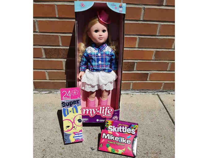 Doll comes with a 24 piece puzzle and 2 boxes of candy, making it the perfect party-ready gift.