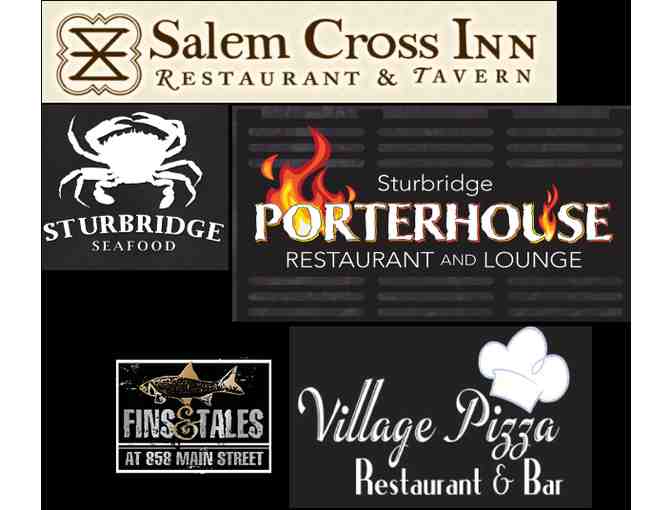 Enjoy meals out on the town with this package of gift certificates to restaurants in the Sturbridge, MA area: