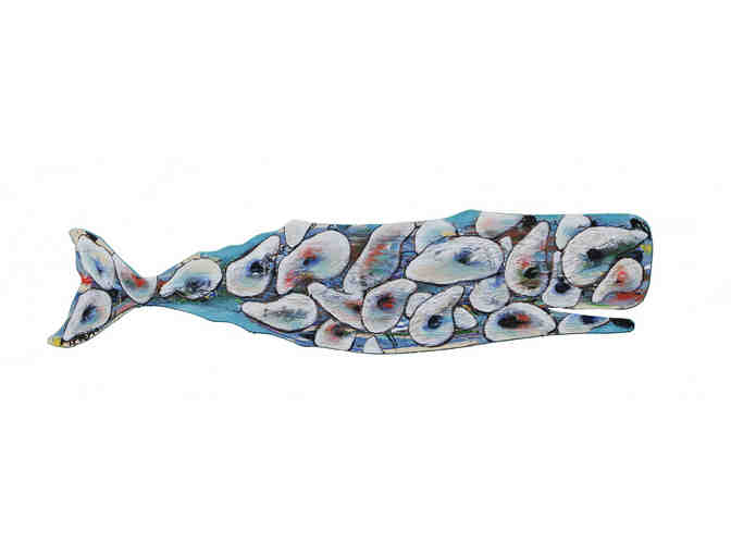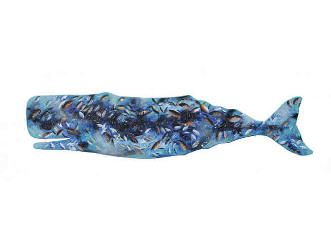 This whale is painted on tww sides. It is approximately 58" x 15"