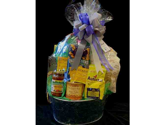 Make a winning bid on this oversized deluxe basket filled with gourmet treats courtesy of Dave’s Marketplace. This basket has more of a savory and salty variety.