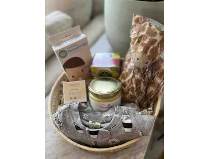 Looking for the perfect gift for the newborn -- or new/expecting mother -- in your life? This adorable baby basket gathers a number of useful items in one pretty package.
