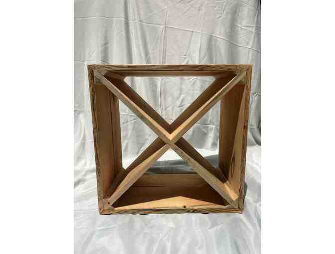 Take home your own custom wine box built by Fine Lines Woodworking. This wine box was built using wood that was cut at the Old Sturbridge Village sawmill. The unfinished wood box holds 24 bottles of wine and comes with a bottle of Sancerre, Vallee De La Loire from 90+ Cellars. The box measures 22" H x 22" L x 12" W.