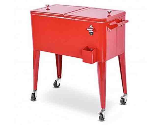 This Costway Red Outdoor Patio, 80 Quart Cooler Cart makes it easier to stay hydrated during those hot summer days. Material A3 steel and plastic Product weight 43 lbs Overall dimension 35.8" x 18.3" x 33.5" (L x W x H) Overall size of cap catcher 3.7" x 2.6" x 4.7" (L x W x H) Distance from floor to cooler box bottom 19.5" Basin size 29.4" x 14.4" x 11.8" (L x W x H) Basin volume 80 quart (76 L) Diameter of wheel 3" Package includes 1 x Cooler cart