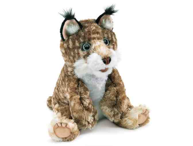 The Folkmanis® Bobcat Kitten puppet is a handful of furry fun. Sweet and soft with brown and tan spotted plush, this wide-eyed critter has movable mouth and legs for multiple ways to play.