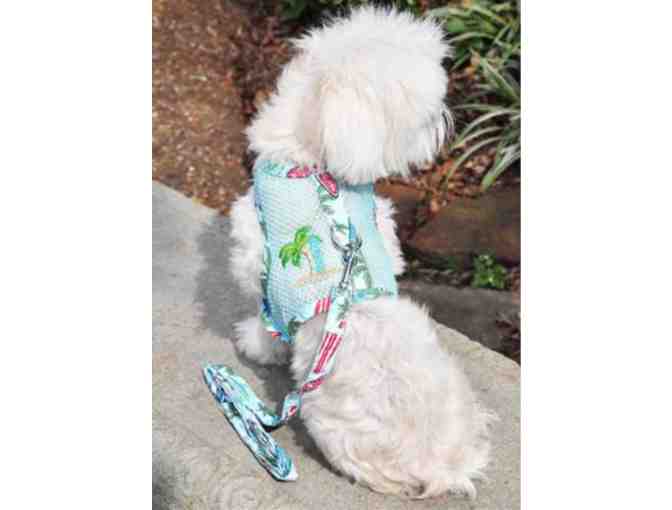 Surf's Up Dude. Your furbaby will be ready for the water with this Surfboard and Palm Tree Cool Mesh Harness. Features a Surfboard and Palm Tree Embroidery Applique.